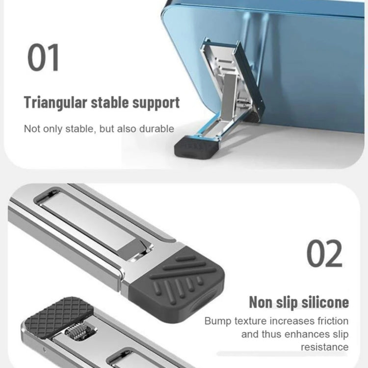 1. Alumīnija sakausējuma īpaši mini, neredzams augstumu palielinošs statīvs, kas piemērots klēpjdatoriem, planšetdatoriem, tastatūrām, mobilajiem tālruņiem utt.