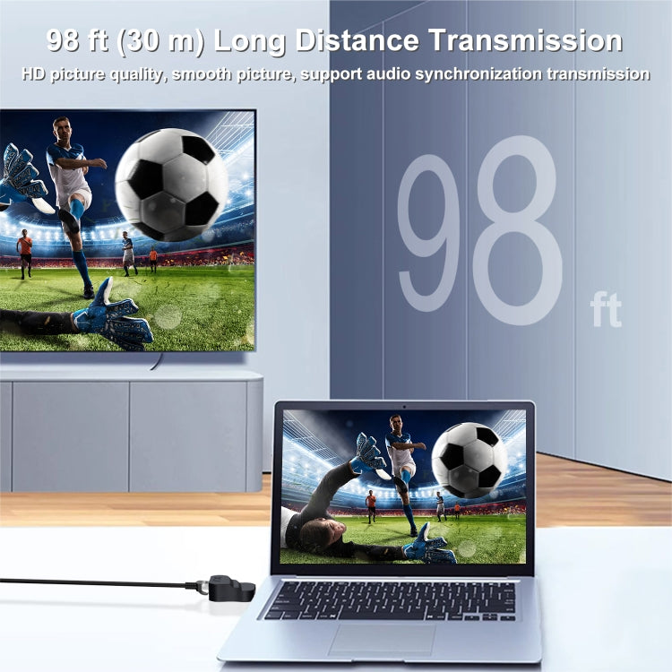 2. 98 pēdu (30 m) tālsatiksmes pārraide: atbalsta bezzudumu pārraidi līdz 98 pēdām (30 m), kas ir ideāli piemērots uzstādīšanai lielās telpās.