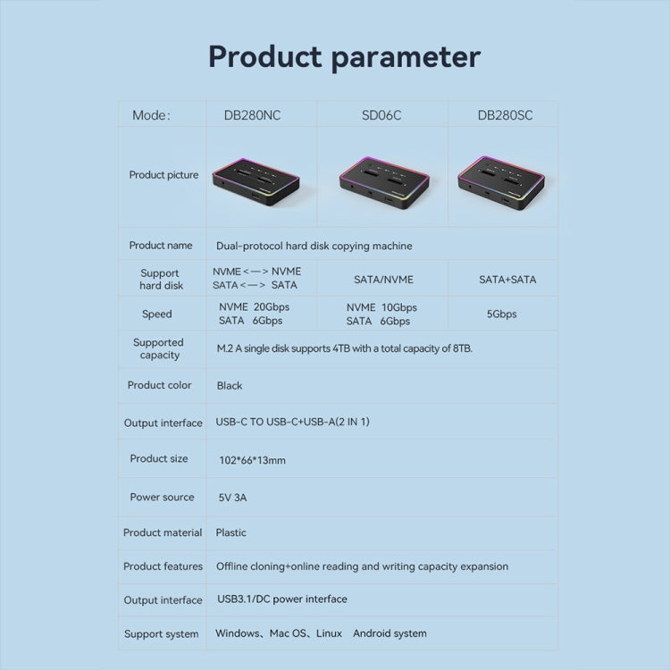 2. Aprīkots ar neatkarīgu strāvas adapteri, lieljaudas barošanas avots nodrošina cietā diska vienmērīgu darbību un stabilu pārraidi
