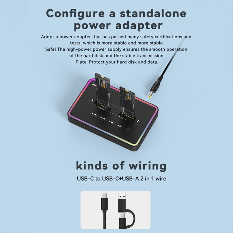 Blueendless M.2 divu slotu cietā diska pamatnes cietā diska kaste, ASV spraudnis