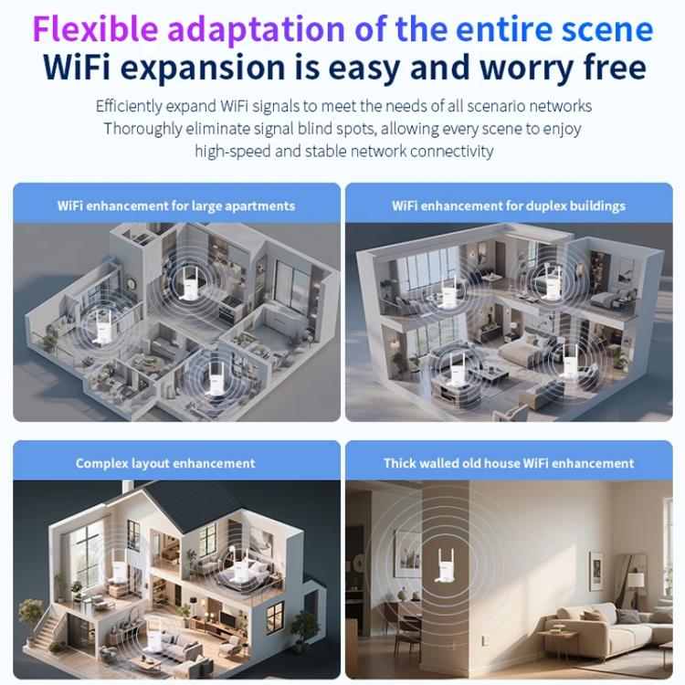 3. Aprīkots ar četrām augstas pastiprinājuma antenām, tas paplašina signāla pārklājumu un panāk spēcīgu sienu iespiešanos.