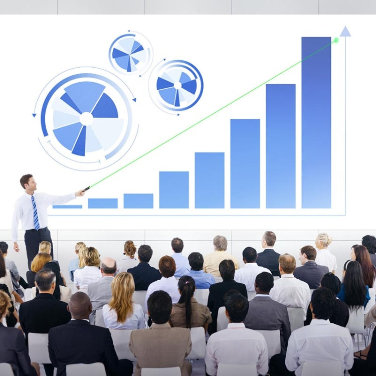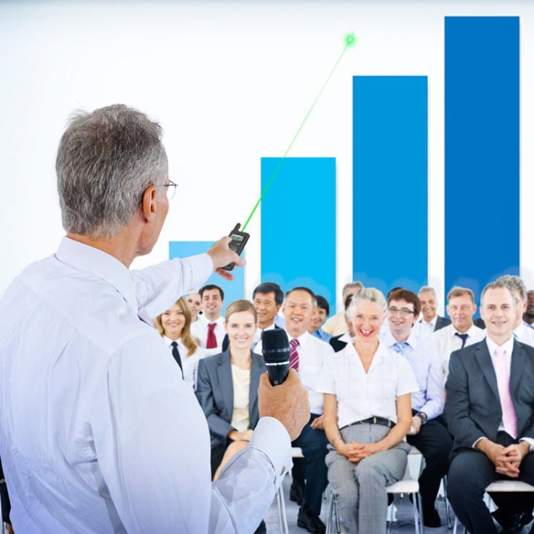 2. 10 reizes spilgtāks nekā sarkanais lāzers un zaļais lāzers, piemērots visiem prezentāciju ekrāniem, pat gaišās telpās, var tikt skaidri attēlots gaišā un ērtā atmosfērā efektīvākām prezentācijām.