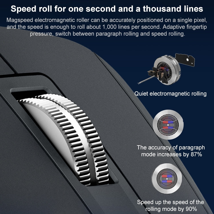 3. Elektromagnētisko ritināšanas ritenīti var precīzi novietot uz viena pikseli, un tas ir pietiekami ātrs, lai ritinātu aptuveni 1000 rindiņas sekundē. Adaptīvs pirkstu galu spiediens, pārslēdzoties starp rindkopu ritināšanas un ātrās ritināšanas režīmiem pēc vēlēšanās.