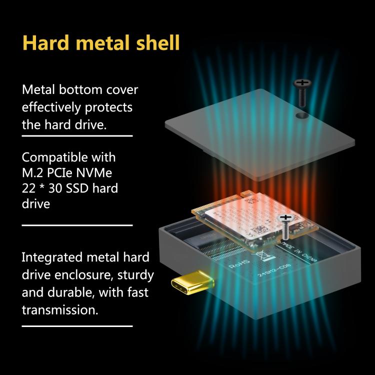 M.2 2230 NVMe cietvielu diska korpuss 10 Gb/s pārnēsājams ārējais korpuss