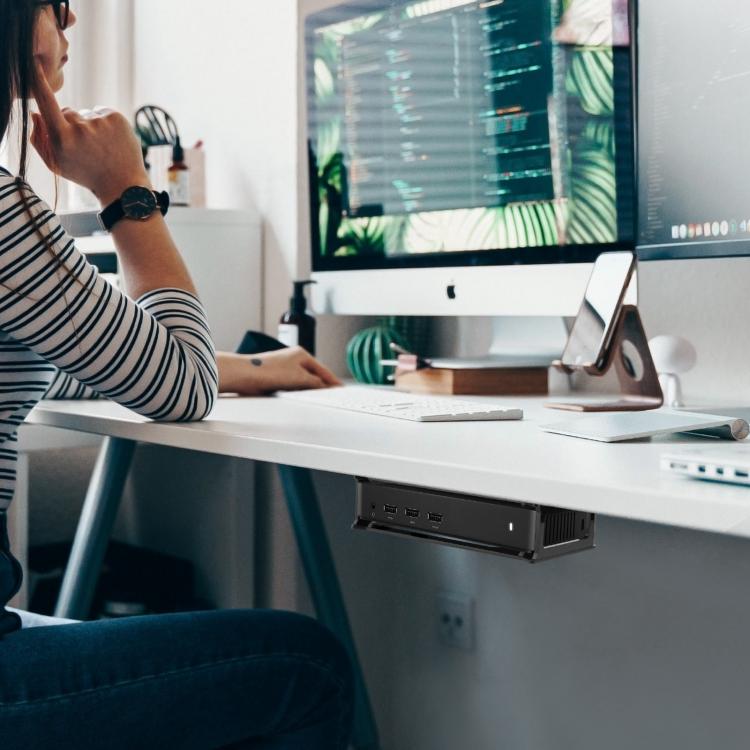 3. Daudzpusīgas montāžas iespējas: Atbalsta trīs uzstādīšanas metodes — stiprinājumu pie sienas, zem galda vai novietojumu uz galda —, lai tas atbilstu dažādiem iestatījumiem un lietošanas vajadzībām.
