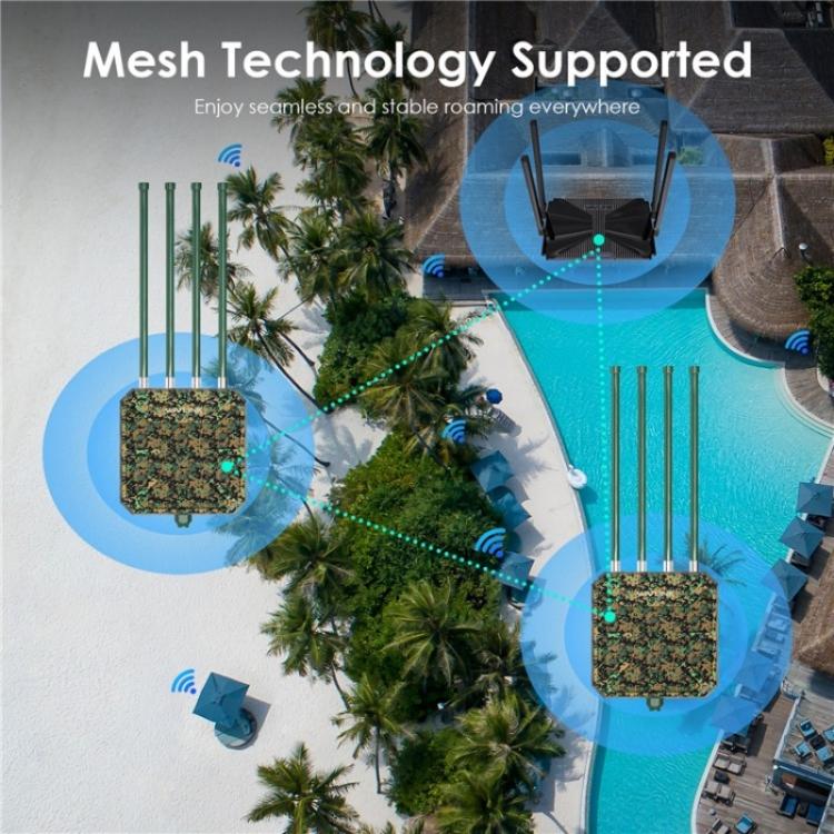 5. Vairāki režīmi, elastīga lietošana: Atbalsta tīkla, piekļuves punkta (AP), maršrutētāja, atkārtotāja, piekļuves punkta + atkārtotāja un citus režīmus, lai apmierinātu jūsu dažādās vajadzības, kas ir piemēroti vairākām savienojuma iespējām ārpus telpām. Maršrutētāja/AP režīms ir ideāli piemērots vadu savienojumu pārveidošanai bezvadu tīklos, savukārt tīkla režīmā varat baudīt netraucētu Wi-Fi ar vienu tīkla nosaukumu un paroli.