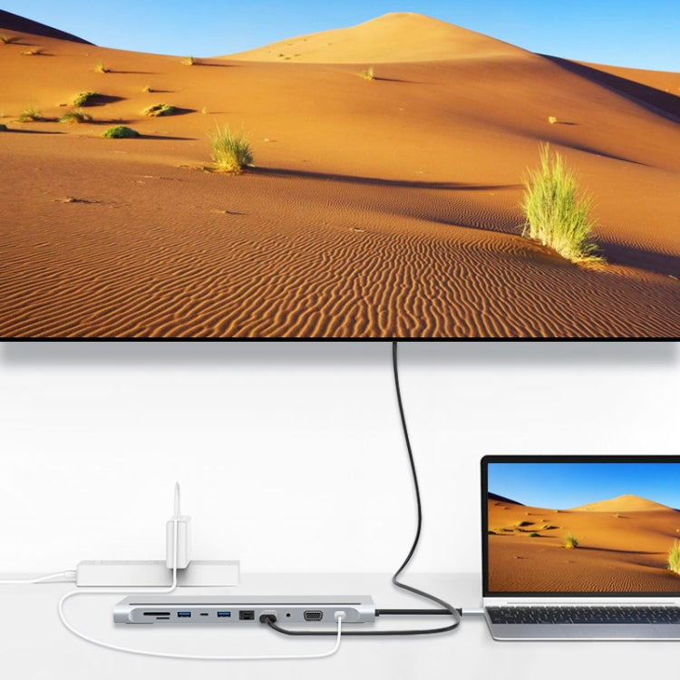 11 in 1 RJ45 + 87W PD + SD/TF + USBx3+ HDMI + VGA + 3.5mm AUX to Type-C HUB Adapter