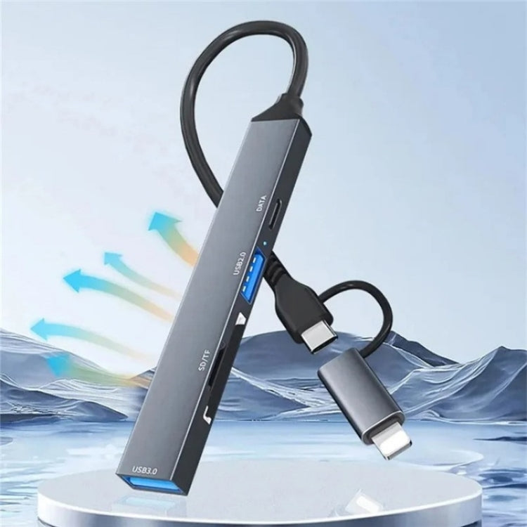 ADS-805 8 Pin + Type-C to USB-C Data + USB 2.0 / 3.0 + SD / TF Card Reader Hub Expansion Converter