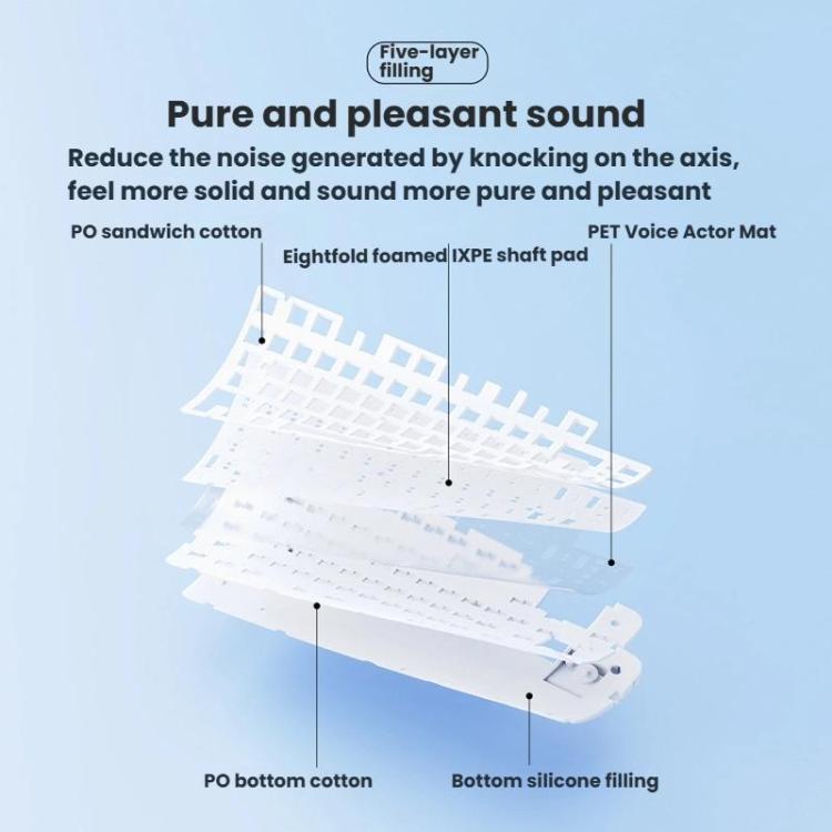 6. Filling: PO cotton + IXPE under-axis pads + PET sound pads + axis seat cotton + silicone bottom pads