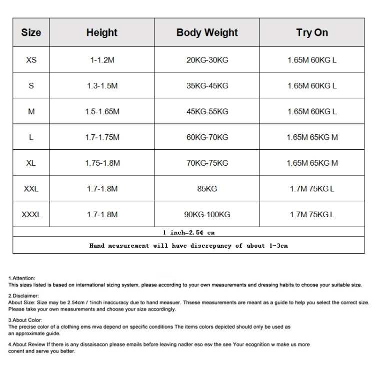 13. XXXL: suitable for the height of about 1.7-1.8 meters, weights 90-100 kg