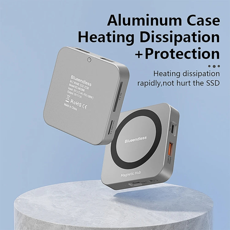 Blueendless 8-In-1 Magnetic HUB With M.2 NVMe/SATA SSD Enclosure (HDMI+PD100W+USB-C/Type-C 3.2+USB-A 3.2+SD+TF+AUX)