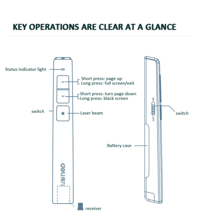 1. The laser pointer adopts RF2.4GHz wireless transmission technology, plug and play, and has good stability.