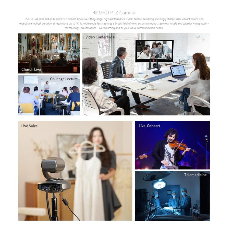 FEELWORLD 4K10X 4K PTZ Camera 10X Optical Zoom AI Tracking HDMI-compatible USB IP Remote Control