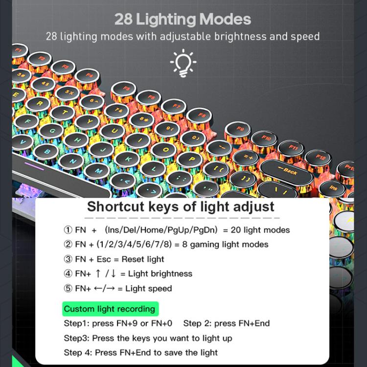 2. 28 lighting modes, colorful backlight brightness and speed can be freely adjusted, support custom lighting