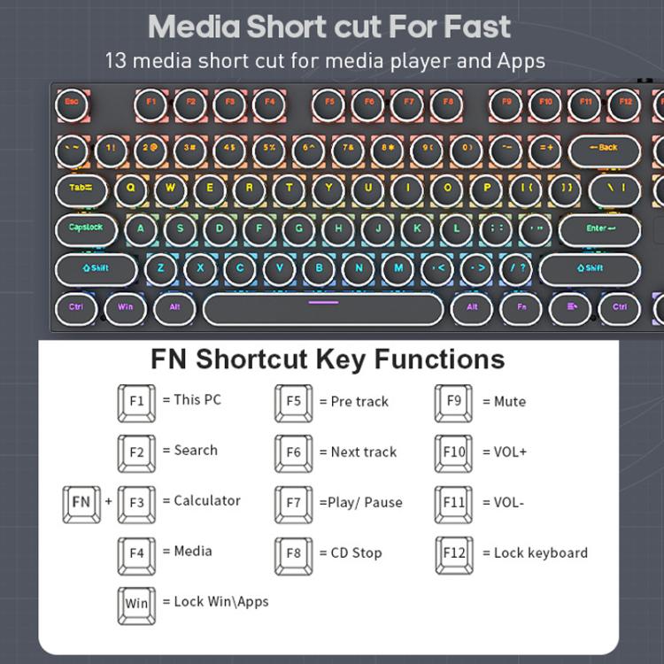 iMICE GK-800 87 Keys USB Wired RGB Round Keycap Mechanical Keyboard