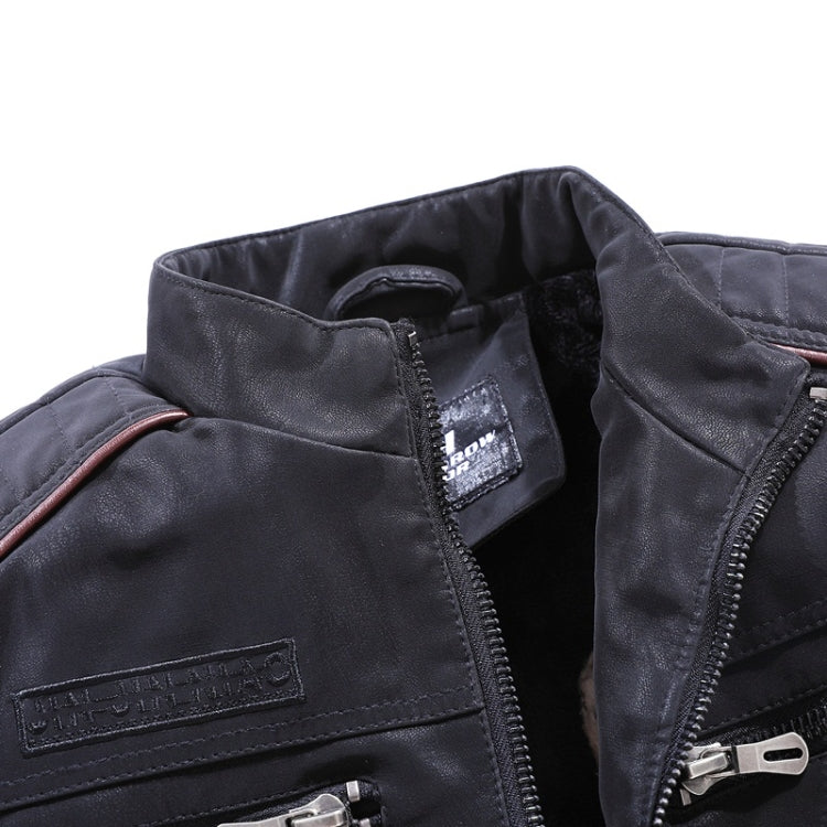 Men Casual Leather Jacket Coat(Color:Coffee Size:XXXL)