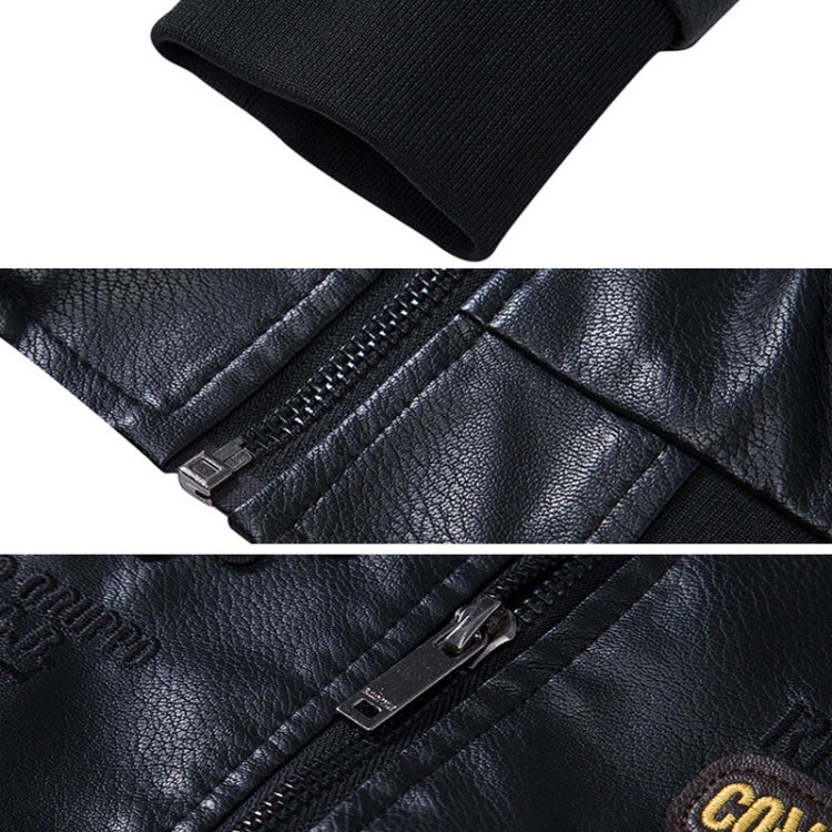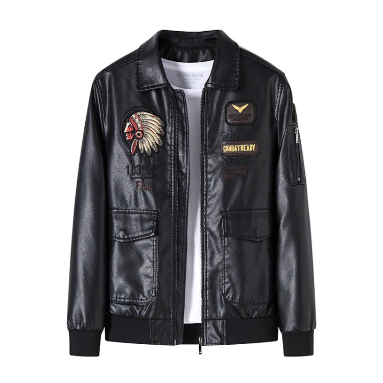 Men Suit Collar Washed PU Leather Jacket Flight Suit