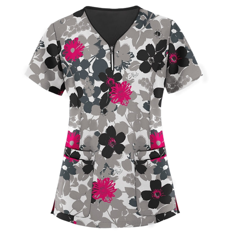 Mid-length Slim-fitting Printed Pullover Nurse Uniform V-neck T-shirt (Color:Pink Size:XXL)