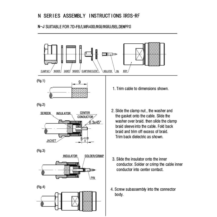 N Male Coax Adapter For LMR400 / RG8 / Belden 9913 / KMR400 RF Coaxial Cable