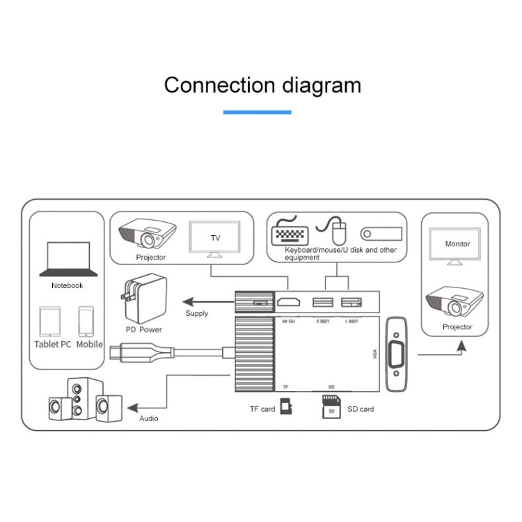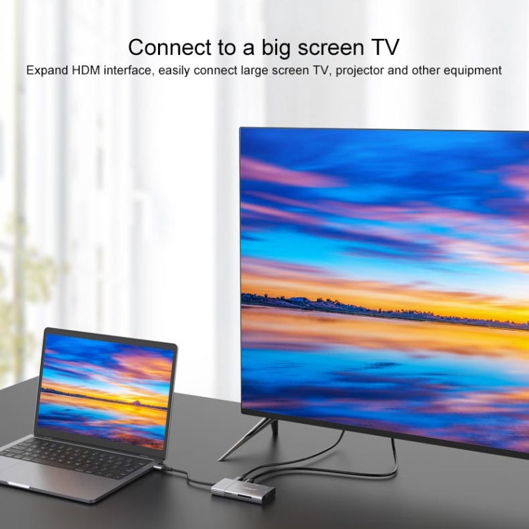 Onten 95113 8 In 1 USB 3.0 x2 + SD / TF + HDMI / VGA + 3.5mm Jack + Type-C / USB-C (PD 3.0) Multi-function HUB Converter Dock Station
