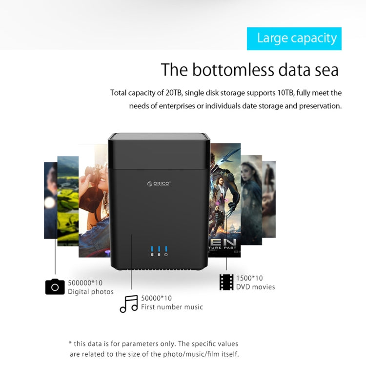 2. Total capacity of 20TB, single disk storage supports 10TB, fully meet the needs of enterprises of individuals date storage and preservation.