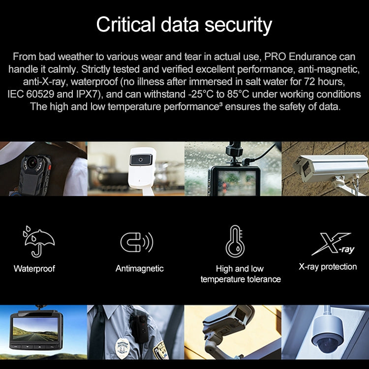 7. 32GB durability Full HD recording up to 17,520 hours, 64GB durability Full HD recording up to 26280 hours, 128GB durability Full HD recording up to 43800 hours