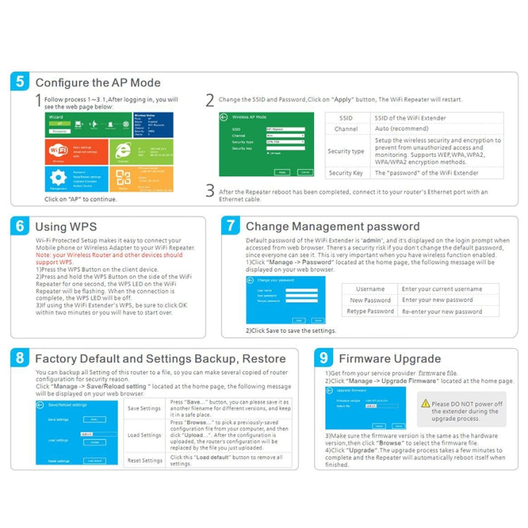 4. Two modes: support transponder and AP operation mode, this is a good entertainment choice, it can meet your different needs in various occasions (for example, at home, coffee shop, shopping mall, etc.).