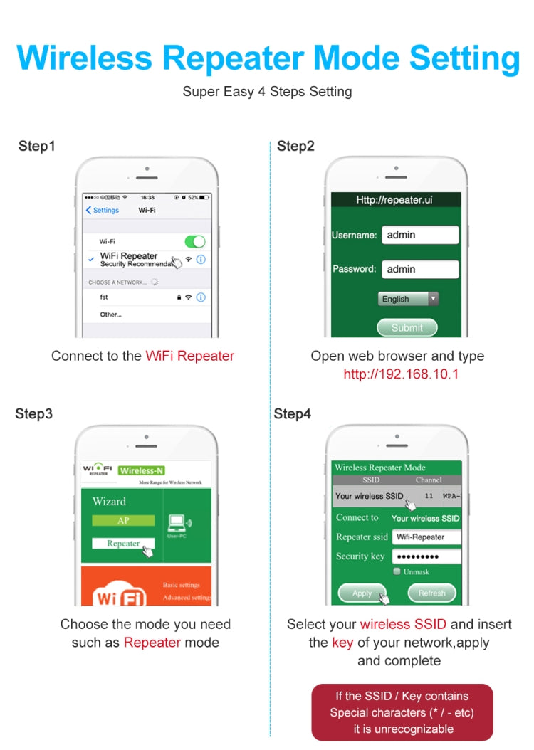-Wireless mode: Repeater/AP