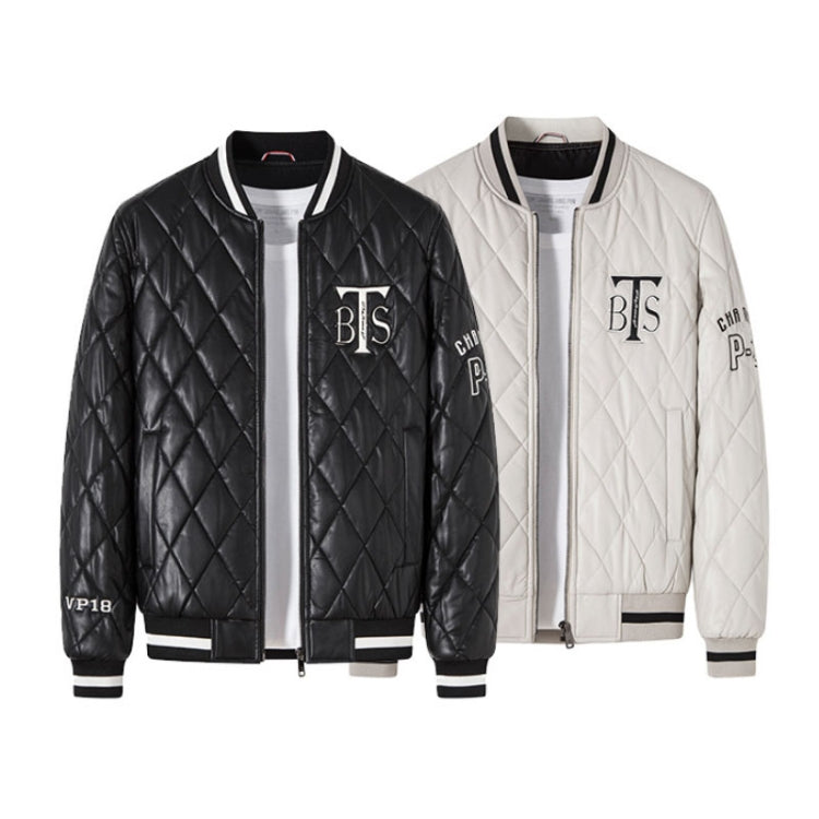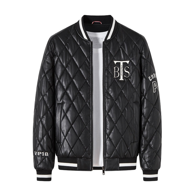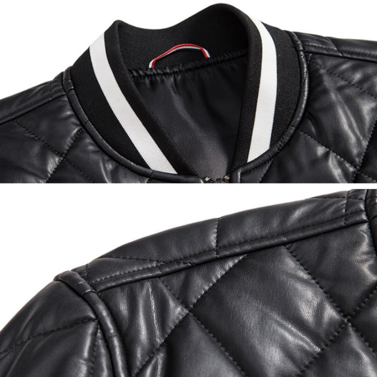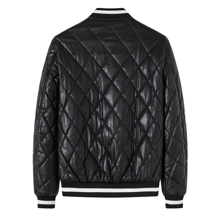 Slim V-Neck Pinch Cotton Baseball Jacket Warm PU Leather Jacket