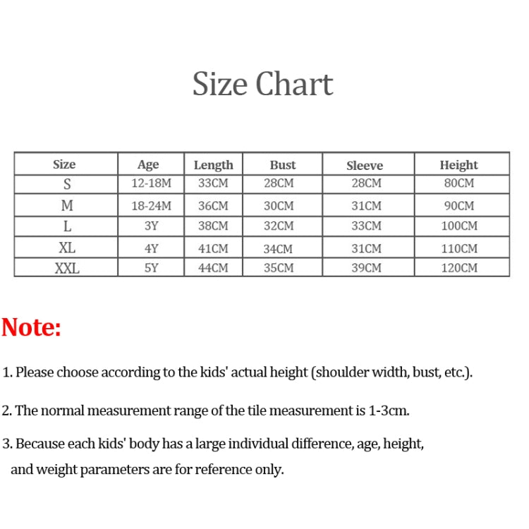 1. Please choose according to the child's actual height (shoulder width, chest circumference, etc.).