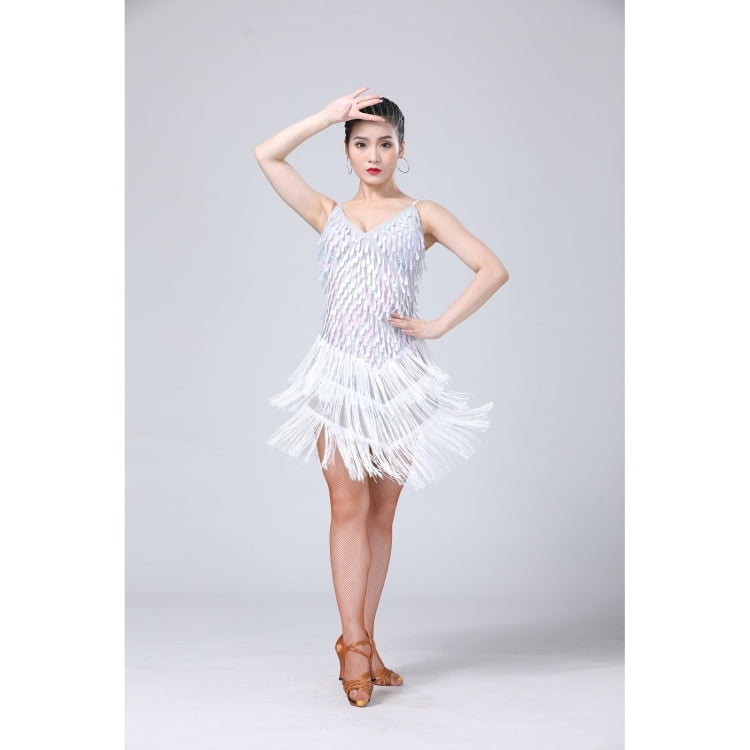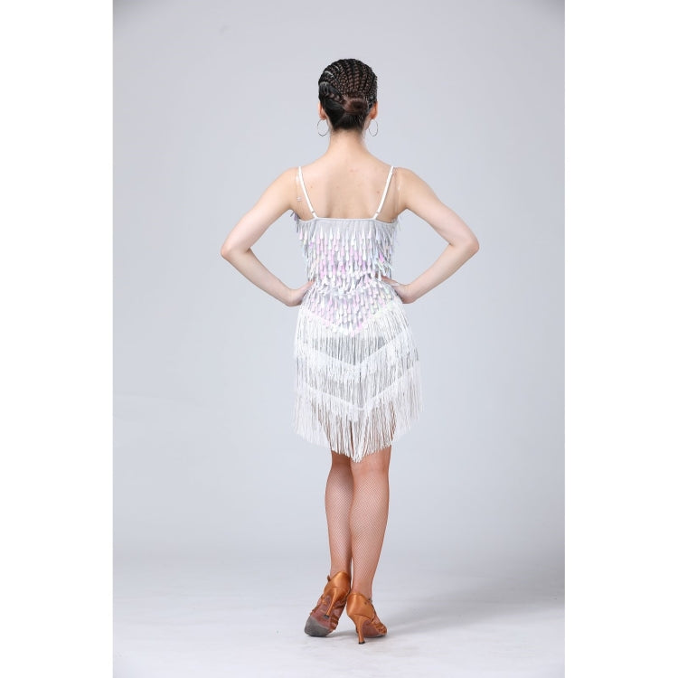 Waterdrop Fringed Sequins Suspenders Latin Dance Dress Competition Performance Suit