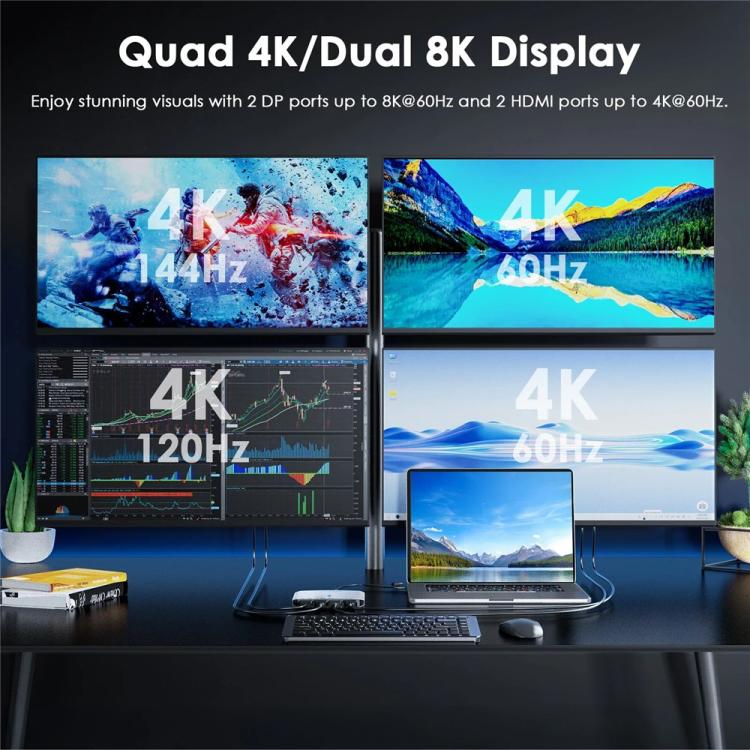 1.Powerful Connectivity:Support for 4K displays through four HD ports, ideal for high-resolution multi-monitor setups.