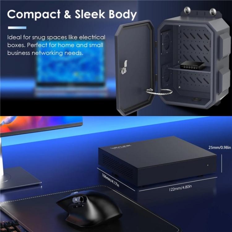 1.High-Speed Connectivity:eaturing 5 Gigabit Ethernet ports (1 WAN + 4 LAN), this switch ensures high-speed data transmission across your entire network for seamless, efficient performance