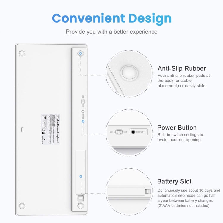 WB-8022 Ultra-thin Wireless Bluetooth Keyboard for iPad, Samsung, Huawei, Xiaomi, Tablet PCs or Smartphones, French Keys