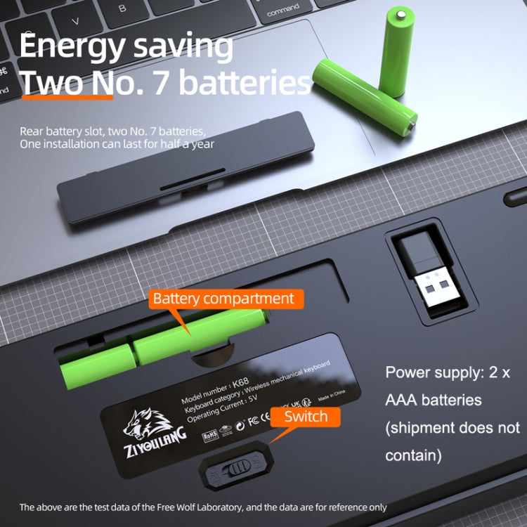 ZIYOU LANG K68 68 Keys Bluetooth Wireless Dual Model Mechanical Keyboard, Style: