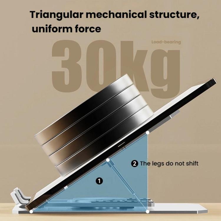 1. Это регулируемая подставка для ноутбука и планшета из углеродистой стали со складной конструкцией, обеспечивающая надежную поддержку и улучшенное рассеивание тепла для устройств диагональю до 17,3 дюйма.