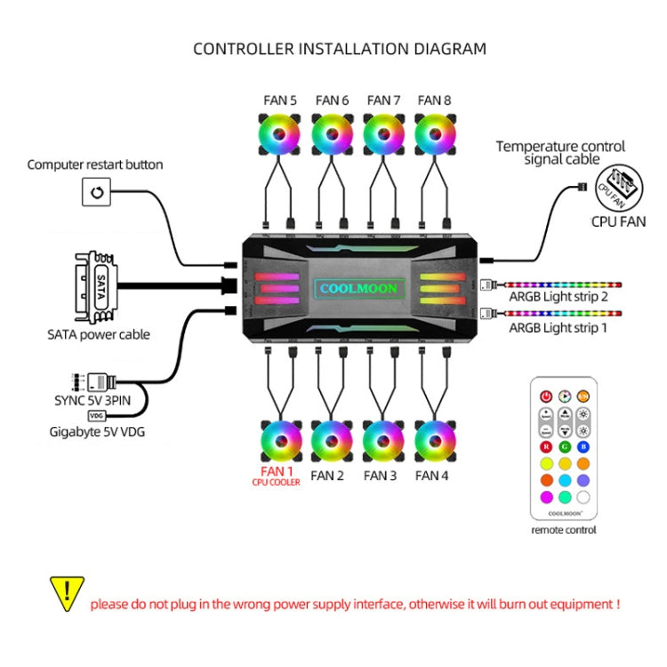 COOLMOON CM-MPAC PWM 5V ARGB Cooling Fan Remote Control For PC Case Chassis, Style: