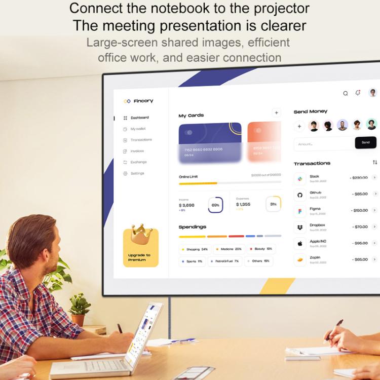 3. Подключите ноутбук к проектору для более четких презентаций на совещаниях, транслируйте изображения на большой дисплей и наслаждайтесь эффективной офисной работой благодаря более простому подключению.
