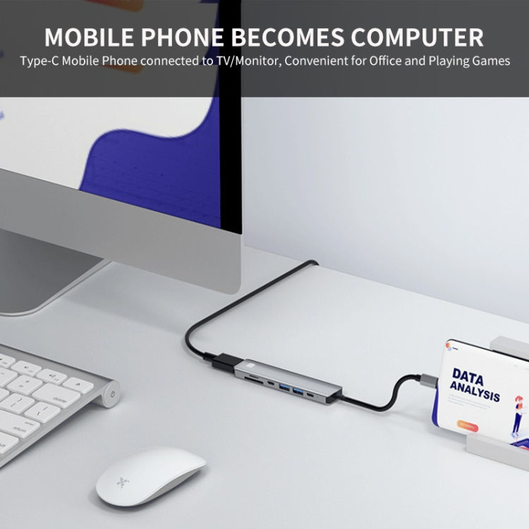 Док-станция JUNSUNMAY 7-в-1 с Type-C на HDMI 4K, адаптер для быстрой зарядки PD, устройство для чтения карт SD/TF