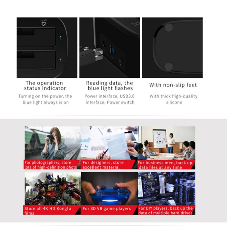 Док-станция для жестких дисков ORICO 6228US3 2,5/3,5 дюйма SATA HDD/SSD с 2 отсеками USB 3.0