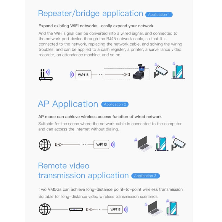 VONETS VAP11S 2.4G Mini Wireless Bridge 300Mbps WiFi Repeater with 2 Antennas