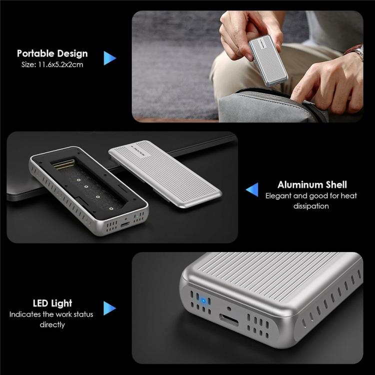 4. Plug & Play и без инструментов: этот портативный корпус легко помещается в карман или портфель, обеспечивая достаточно места для хранения данных в дороге. Он поддерживает функцию Plug & Play без дополнительных драйверов и позволяет устанавливать SSD-накопитель без инструментов.